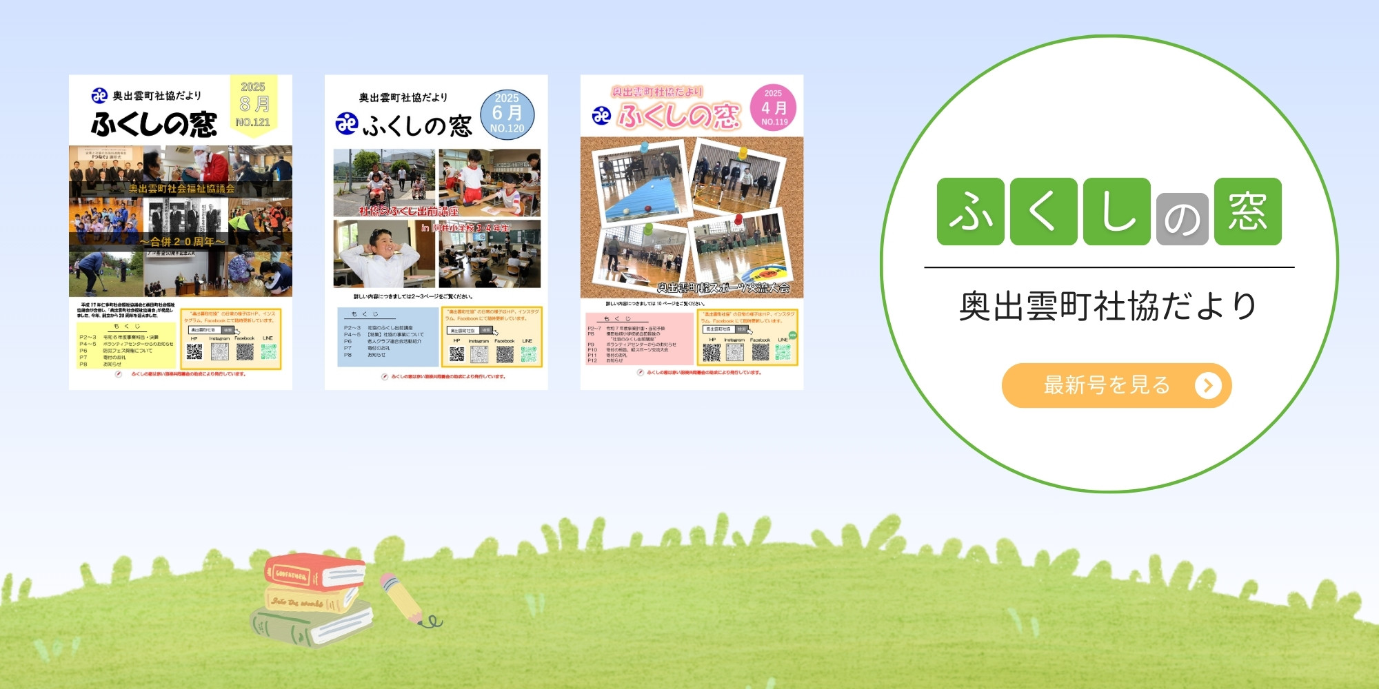 トップページ 2024.05.01 奥出雲町社協からの最新情報 2025.10.6 第21回社協会長杯奥出雲町健康ペタンク大会参加者募集!! 2025.10.2 おくいずも防災フェスを開催します! 2025.9.9 三成小学校3年生を対象にパラスポーツ体験を行いました! 2025.9.5 三成小学校3年生を対象にアイマスク体験を行いました! 2025.8.19 中学生共に生きる力を育てるワークショップを開催しました!! 2025.8.8 情報奥出雲で放送されます!! 2025.8.7 令和7年度戦没者追悼式の開催のお知らせ 2025.7.29 合併20周年 2025.7.24 『つなぐ』協力企業と途絶えることのない関係を お知らせ一覧へ Instagramはこちら Facebookはこちら 最近の出来事 奥出雲の紅葉を見ながらグラウンド・ゴルフを体験してみませんか!?社協では誰もが楽しめるグラウンド・ゴルフ場の運営を行なっています✨ 令和7年10月23日(木)に仁多ショッピングセンターサンクス様のご協力のもと、仁多中学生が街頭募金を行います。多くの皆様のご協力をお願いいたします。 10月16日(木)に令和7年度福祉ビジョン21世紀セミナーが全国社会福祉協議会で開催されます!今日は最後の練習を行い、準備万端です🔥 okuizumosyakyo 10月16日(木)に令和7年度福祉ビジョン2 9月5日金曜日に三成小学校3年生を対 さらに読み込む Instagram でフォロー