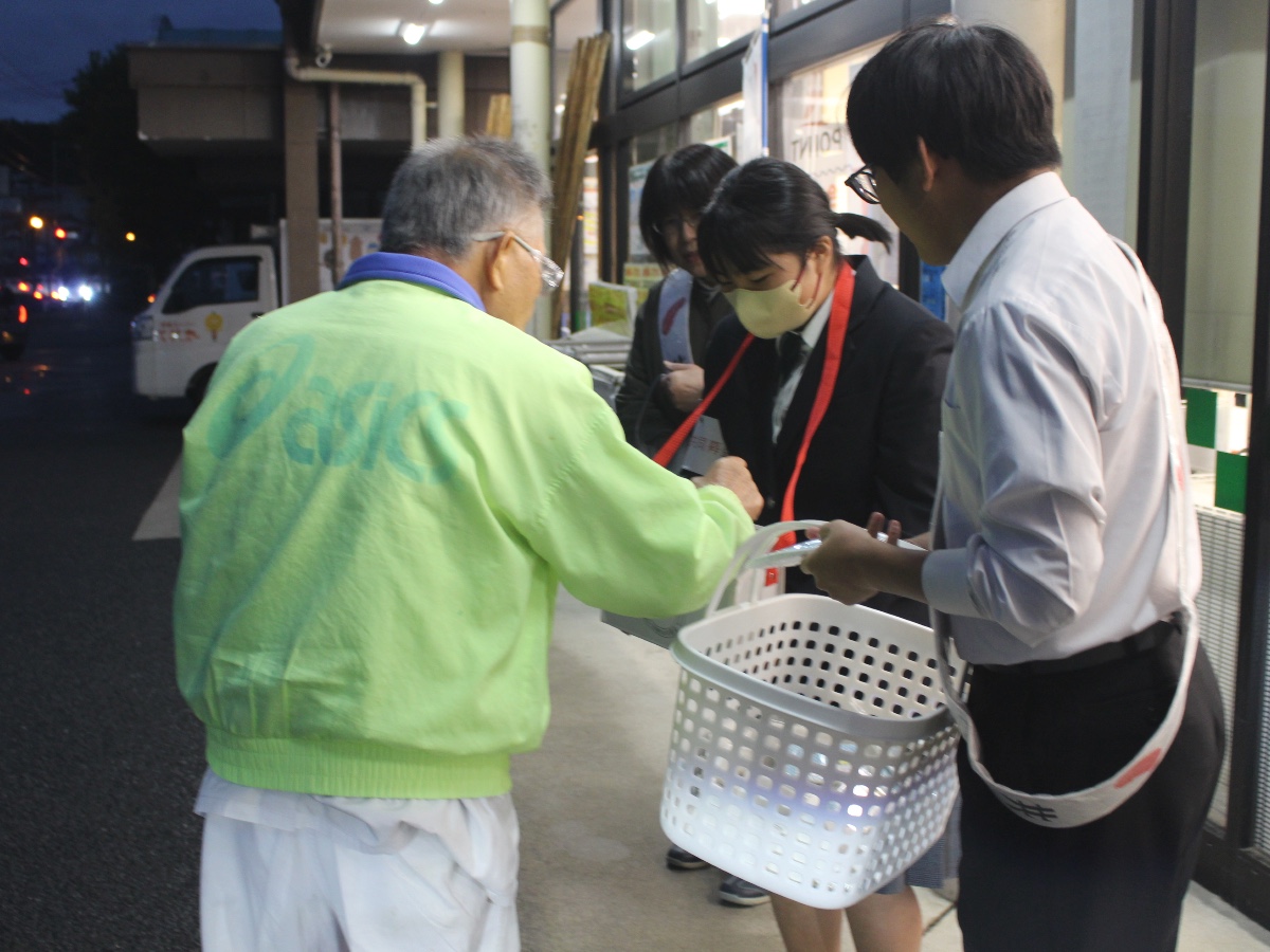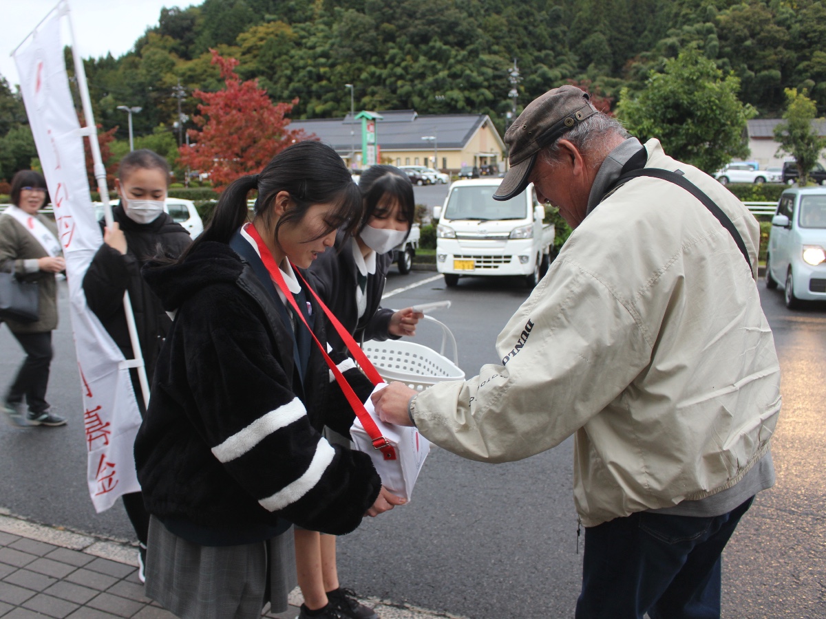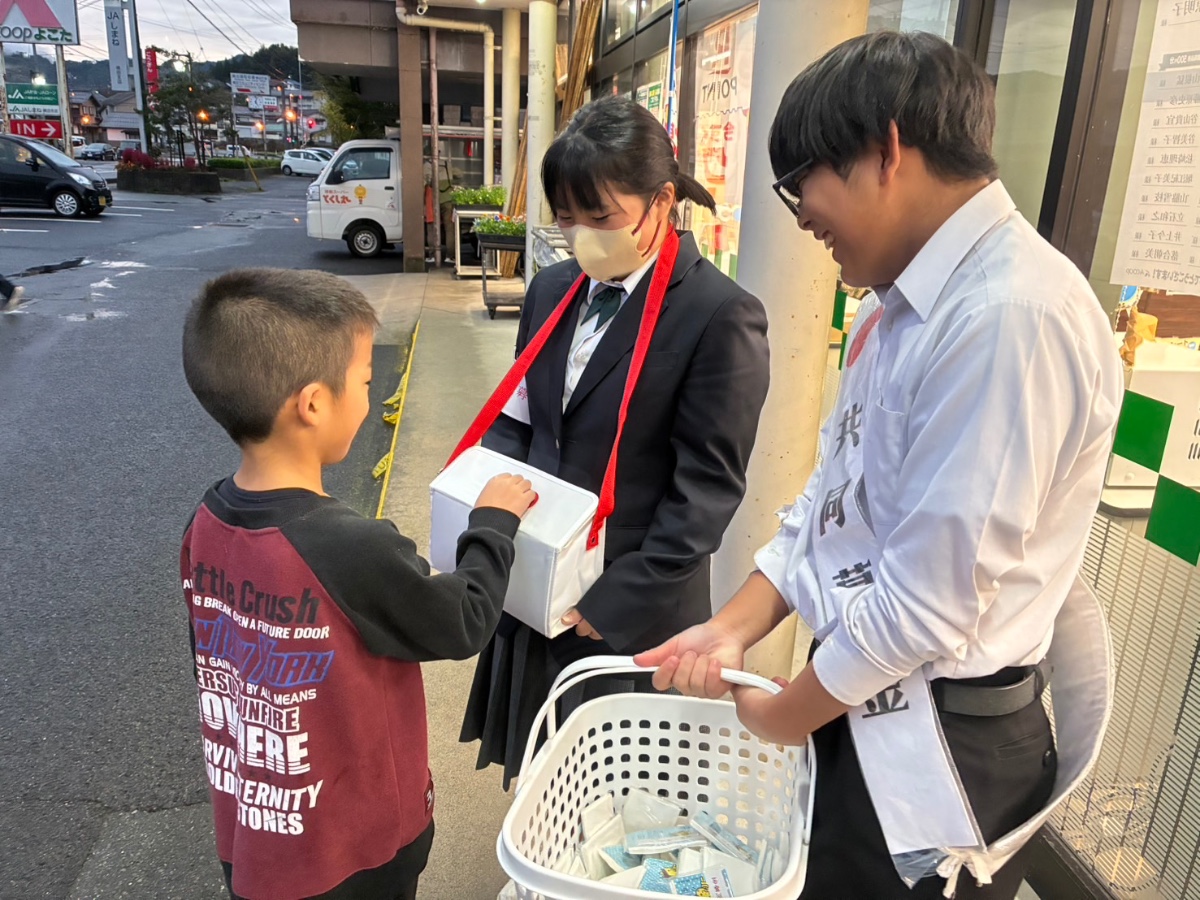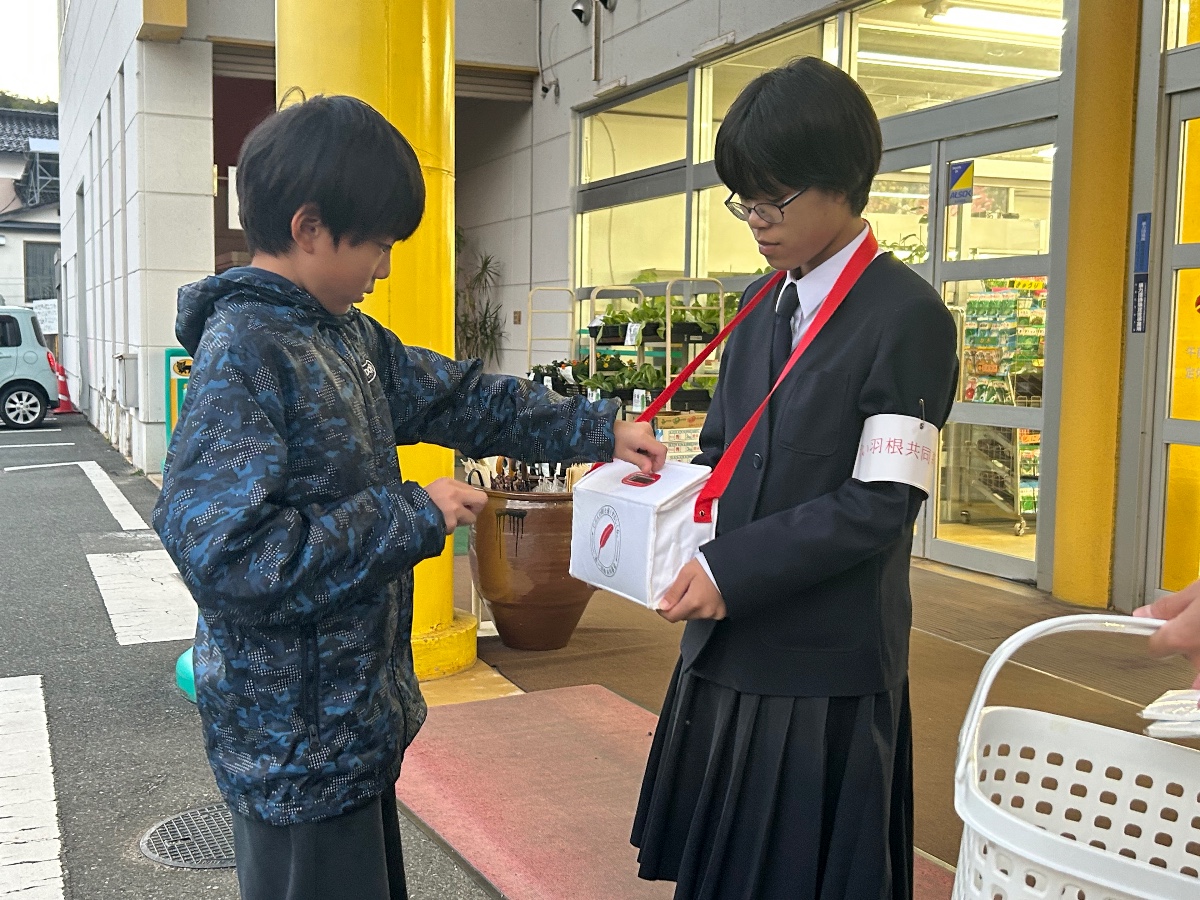 令和7年10月31日(金)に横田中学生5名が横田蔵市、Aコープ横田店に分かれ街頭募金を行いました。
