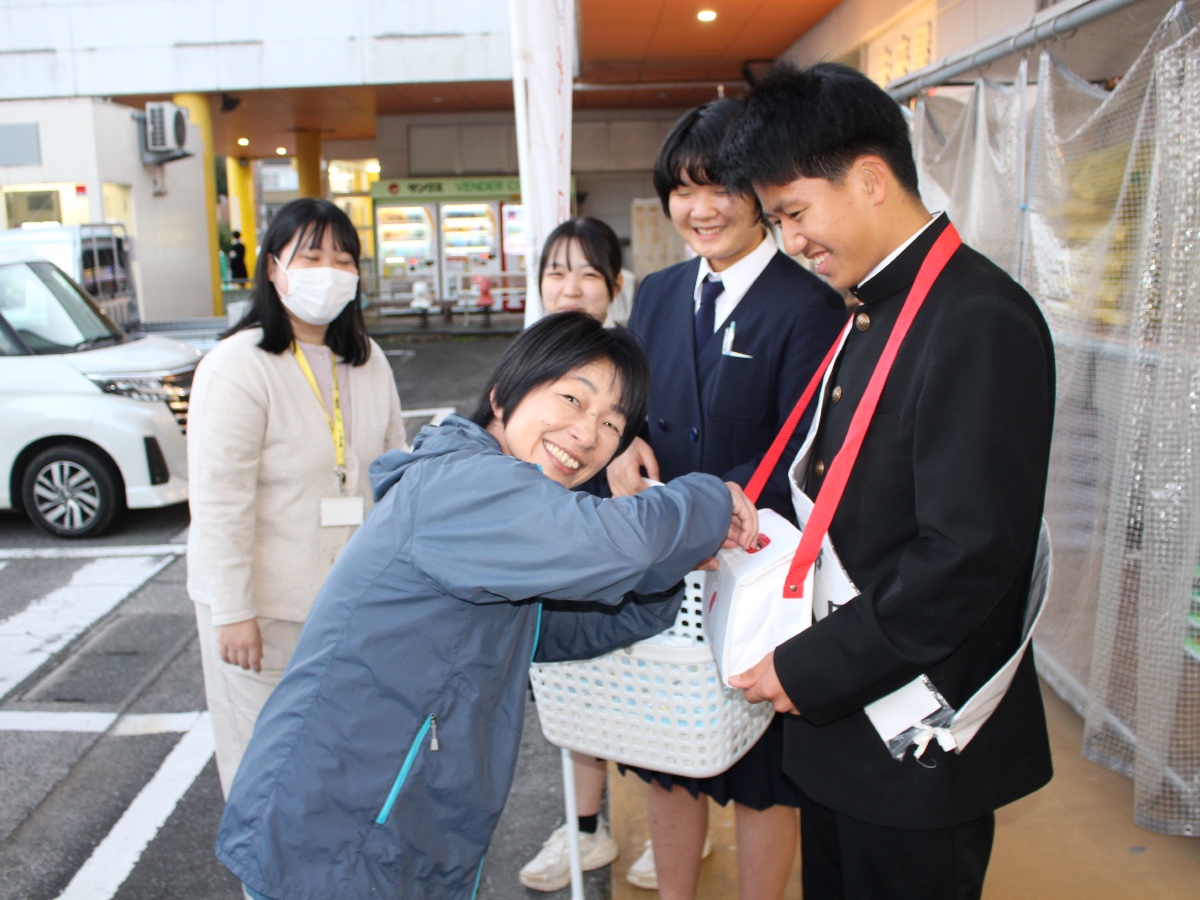 令和7年10月23日(木)に仁多中学生7名が仁多ショッピングセンターサンクスで街頭募金を行いました。