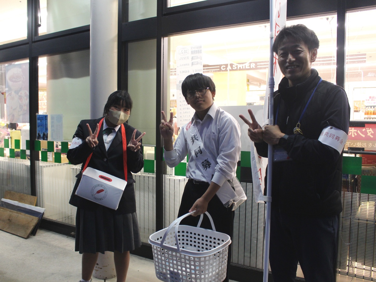 10月29日(火)に横田中学生7名が横田蔵市、Aコープ横田店に分かれ街頭募金を行いました。