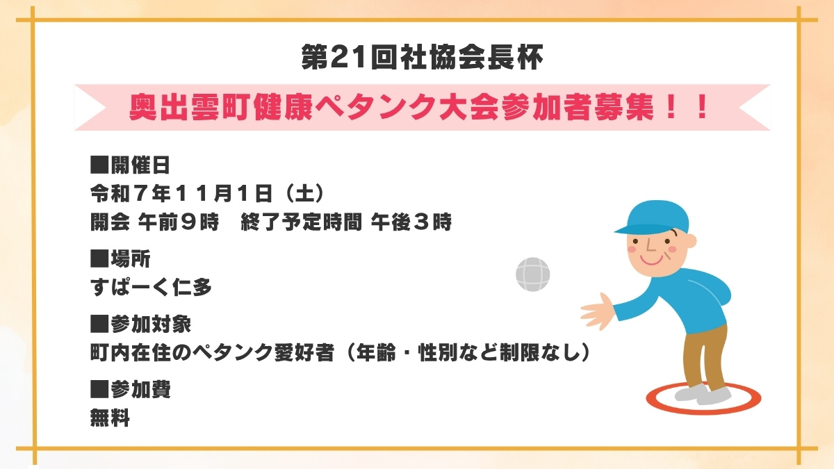 ●第21回社協会長杯奥出雲町健康ペタンク大会参加募集要項 [Word]