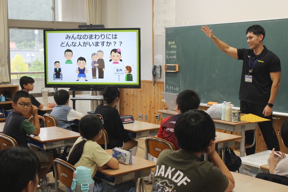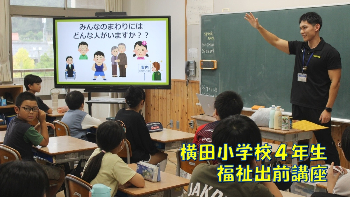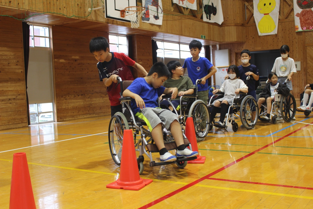 令和7年10月8日(水)に横田小学校4年生25名を対象にアイマスク体験と車いす体験を行いました。