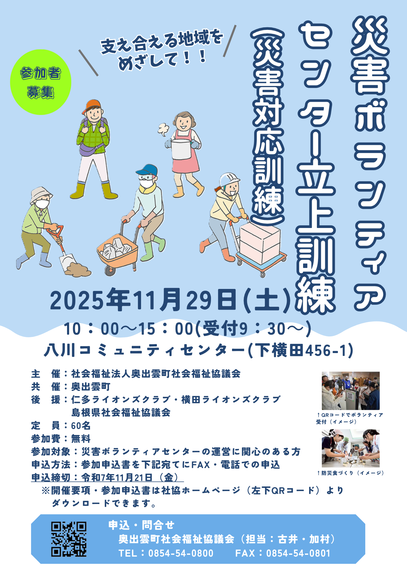 災害ボランティアセンター立ち上げ訓練を開催します!!