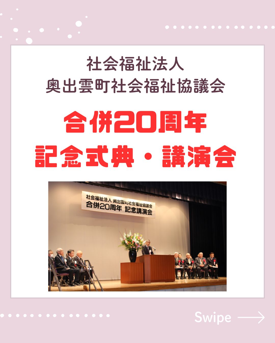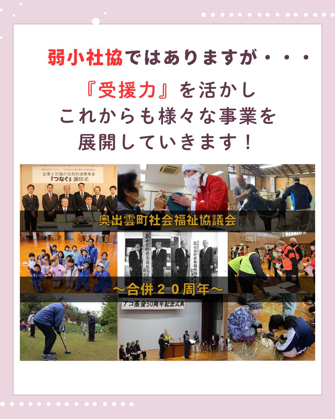 昨年、奥出雲町社会福祉協議会は合併20周年という節目の年を迎えました。