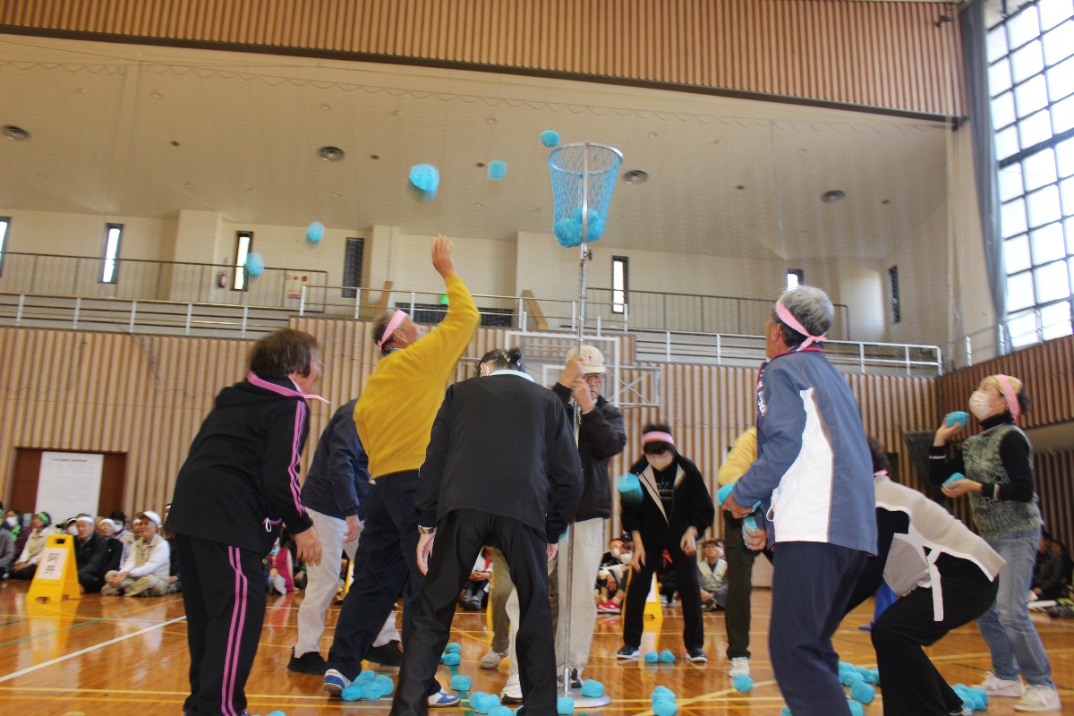 11月8日、4年振りに老人クラブの一大イベントふれあい運動会を開催しました。会場となる町民体育館に約200名の参加者が集まり大盛り上がりの大会となりました。参加した皆さんからは「あだん!あんた久しぶり!」「やっぱり地区対抗だけんのぼせーわ!」と久しぶりの開催らしい感想が聞かれました。気になる結果は、なんと今年度復活した三成地区(三成いきいきクラブ)が優勝と言う結果となりました。何はともあれ、皆さん怪我無く終えることができたのが何よりです。