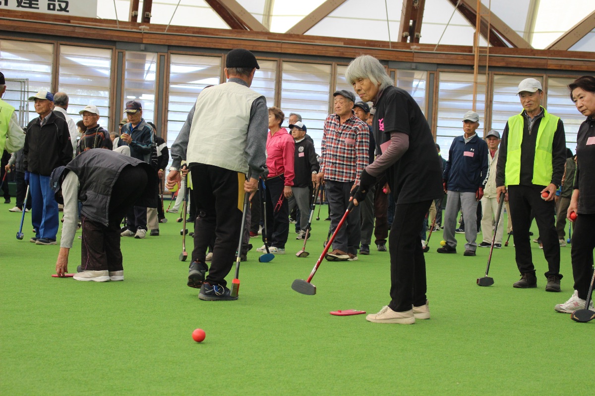 ふれあい運動会の代替事業として11月11日に地区対抗の団体戦グラウンド・ゴルフ大会を開催しました。